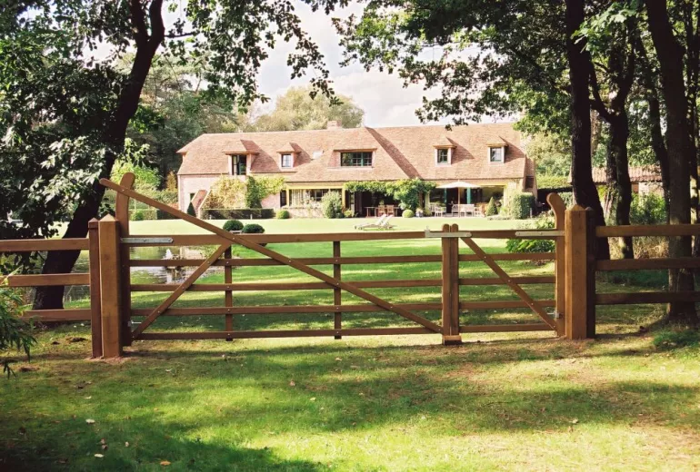 - Un diseño inglés tradicional con un arco elegante que se integra perfectamente con nuestros vallados de madera.