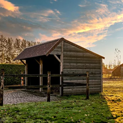 Los caballos soportan las temperaturas exteriores perfectamente. Sin embargo, es necesario tener un refugio en su campo. Este refugio puede estar abierto por un solo lado, pero debe contener una zona de descanso seca. El refugio proteje a sus caballos contra la lluvia intensa o el fuerte sol. Vea nuestras opciones de refugio aquí.